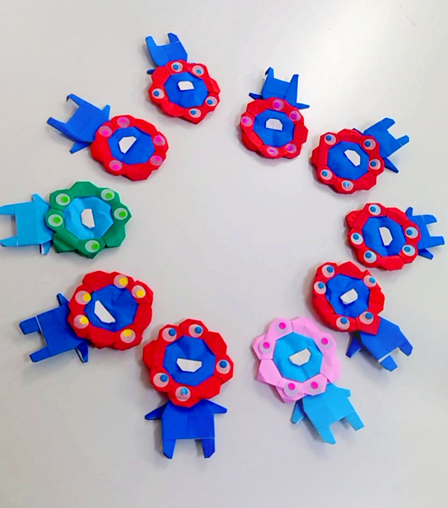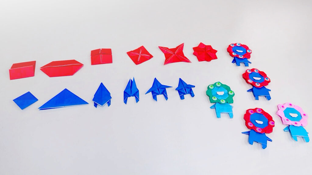 メンバーさんと一緒に、工程ごとに進めて行きました。写真は工程ごとの折り紙です。
