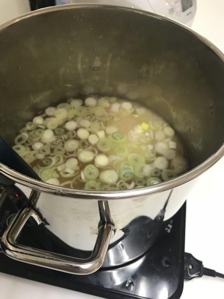 鍋が温まり始めると、ふわっと漂ういい香りがあたりに広がり、思わずお腹が鳴りそうに。その香りにつられて、遠くから様子を見に来るスタッフもちらほら。「もうできる?」「ちょっと味見させて!」なんて言いながら、さらに場がにぎやかになっていきます。みんなで一つの鍋を囲むというだけで、こんなにも楽しい空気になるのだと、毎回改めて感じる瞬間です。
