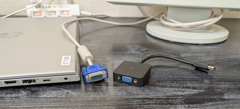メンバーさんによっては、大きな画面で作業がしやすいように外部モニターを接続することがあるのですが、最近のパソコンはこれまで使っていたケーブルが直接つなげられないことも増えてきました。