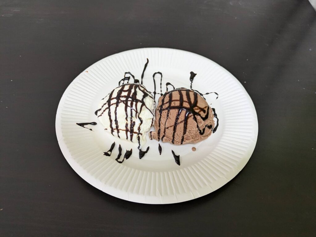 バニラアイスとチョコレートアイスの2色盛を、参加したみなさまに振舞いました♪