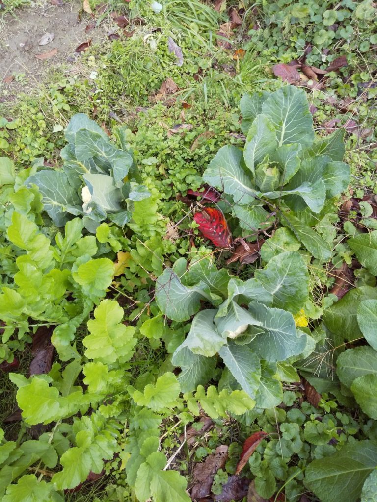 カリフラワーにいたっては収穫時期を知らずに放置していたところ、数ヶ月経った冬の時期に白い身が見えてきて驚きました。
